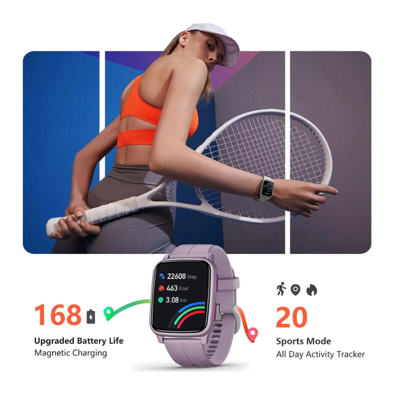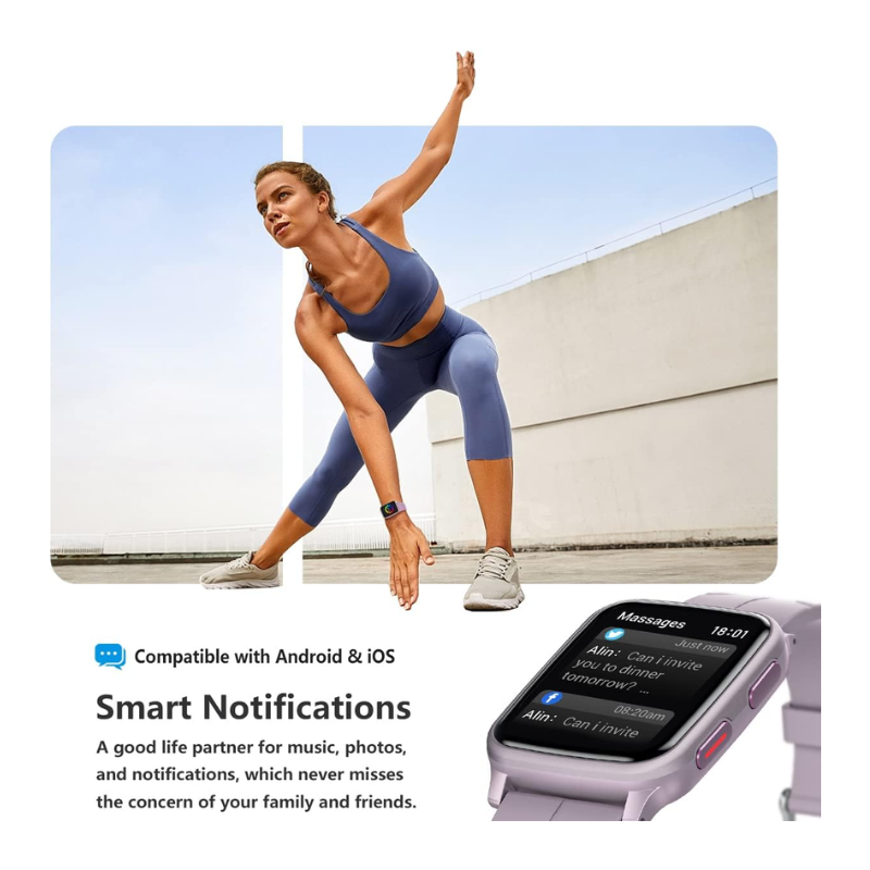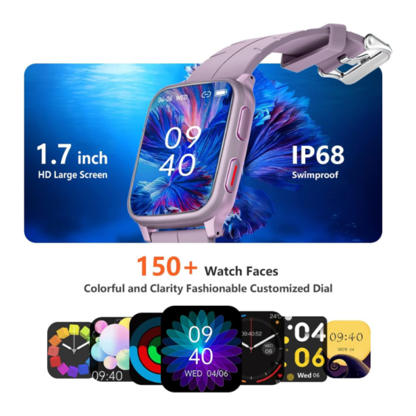The MorePro smartwatch with 1.7″ HD full touch screen brings smooth touch and excellent visual experience, which can set a customized fashion watch face by your personal photos or the 150+ delicate free dials.