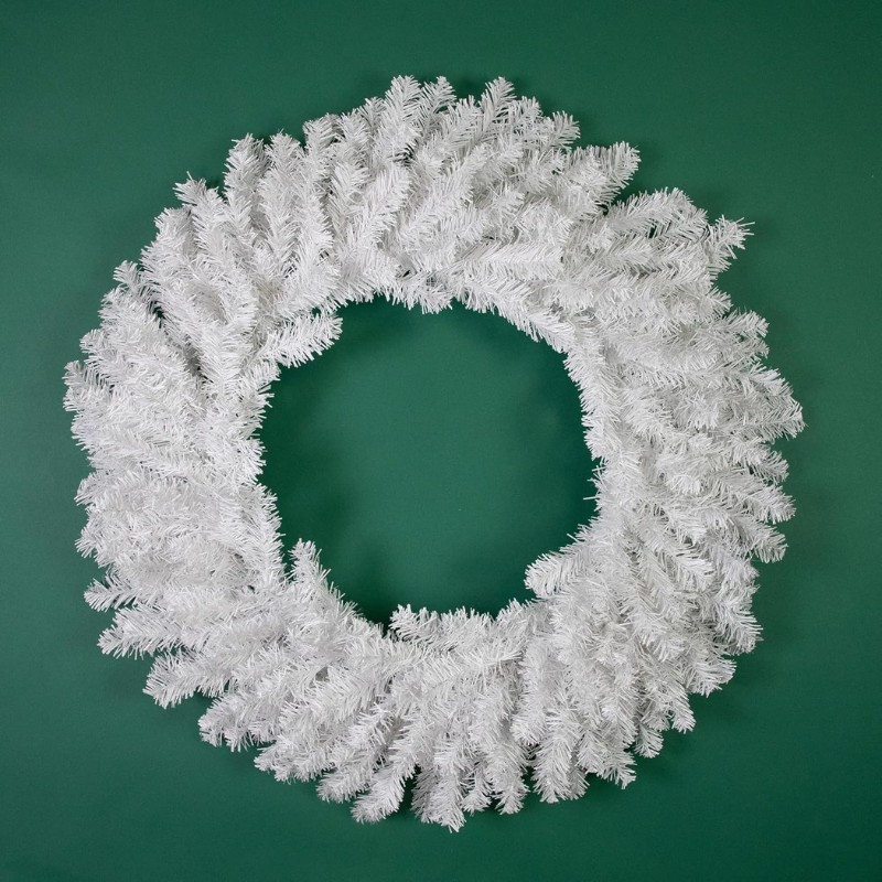 This wreath features a unique twist on the classic Canadian pine wreath with its stark white foliage. It’s the ideal way to add a whimsical touch of holiday style to your front door or mantle. Product Features: Unlit. 220 tips. No assembly required “” wreath comes in 1 piece. For indoor or outdoor use. Includes a heavy duty ring metal frame backing for hanging. Flame retardant. Dimensions: 24″ diameter (measured from outermost tip to outermost tip across the wreath). Material(s): PVC/metal