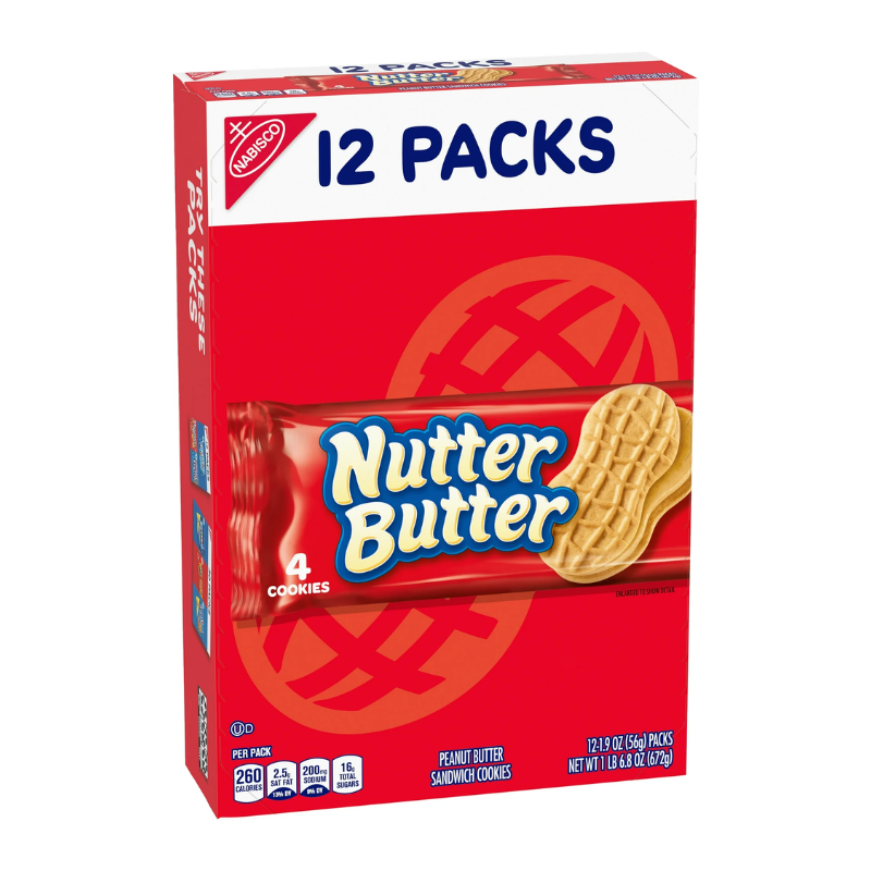Nutter Butter Peanut Butter Sandwich Cookies, 12 Packs (4 Cookies Per Pack)