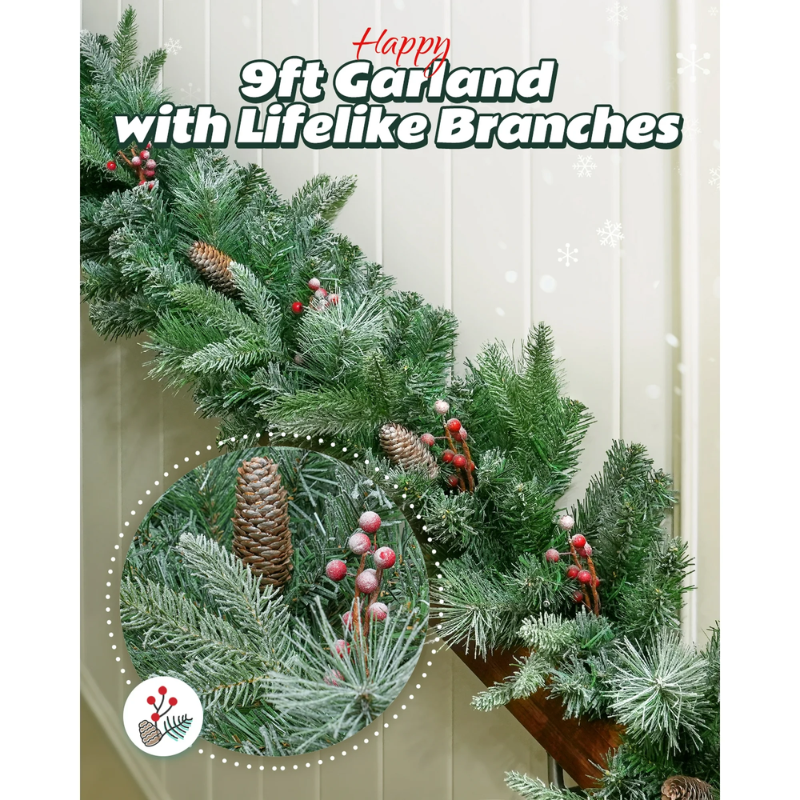 The garland is adorned with a snowy finish, giving it a charming winter wonderland appearance. The artificial snow creates a cozy and festive atmosphere, enhancing the holiday spirit in your home. Made with high-quality PVC & PE materials, this Christmas garland is durable and long-lasting, ensuring it can be used for many holiday seasons to come. It is also easy to use, as it comes fully assembled and ready to hang. Simply arrange it in your desired location, turn on the lights, and enjoy the festive ambiance it brings to your home.