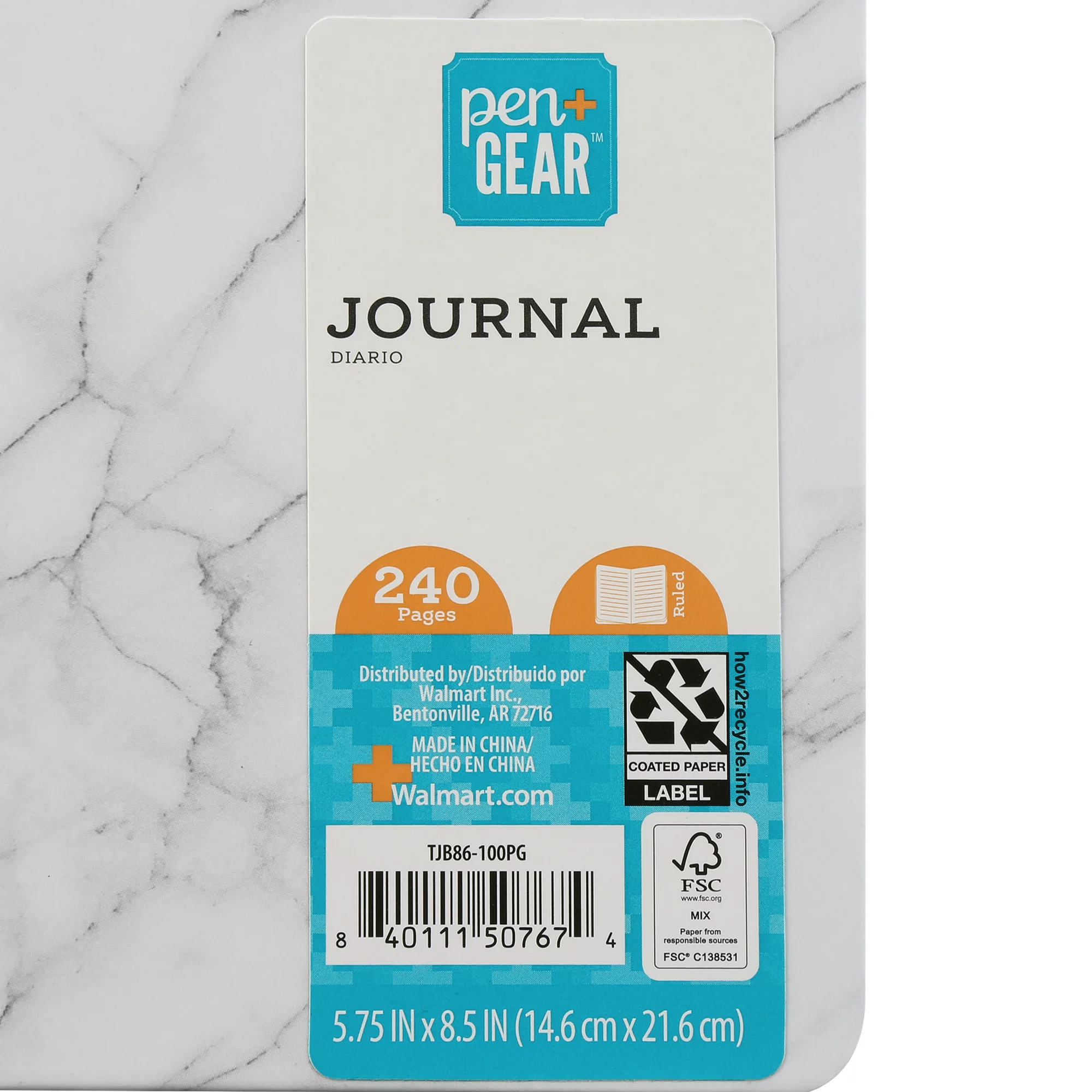 Pen + Gear Medium Journal, Marble with Copper Foil Stamping, 240 Pages: