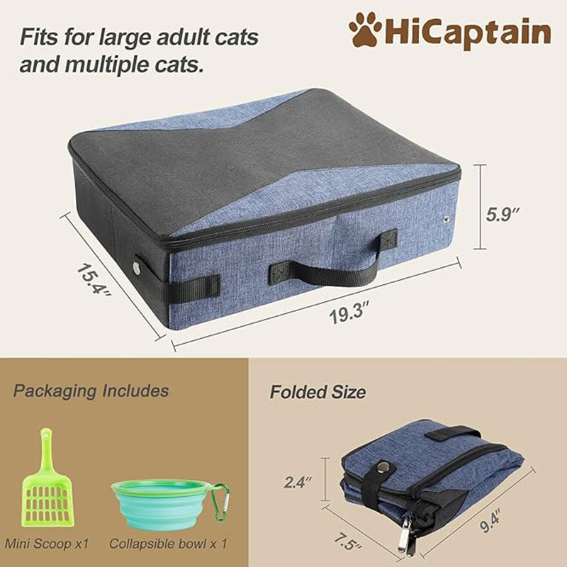 • Ultra-light, occupy no space, easy to be folded into luggage in travel. Package included: 1x Folding cat litter box, 1x travel bowl and 1x tiny shovel.