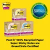 - 100% RECYCLABLE: These GreenCircle Certified Post-it Notes are made in a zero-waste-to-landfill facility, and the Notes along with their packaging are 100% curbside recyclable