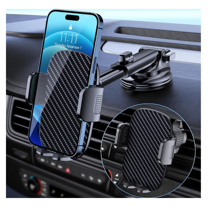 3 IN 1 Phone Holders for Your Car: A cell phone holder car is equipped with a suction cup and vent clip, which can be freely mounted on the windshield, dashboard, and air vent for feeding your different usage needs. Cell phone holder is applied to most cars, pickup trucks, SUVs, and taxis. A perfect assistant for Uber, and Lyft drivers.