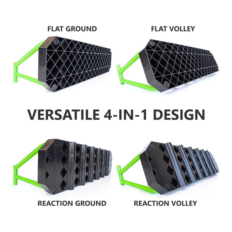 The smooth panel provides a predictable rebound response. On the other side, the wave-textured panel creates random return trajectories–perfect for reaction and agility training.