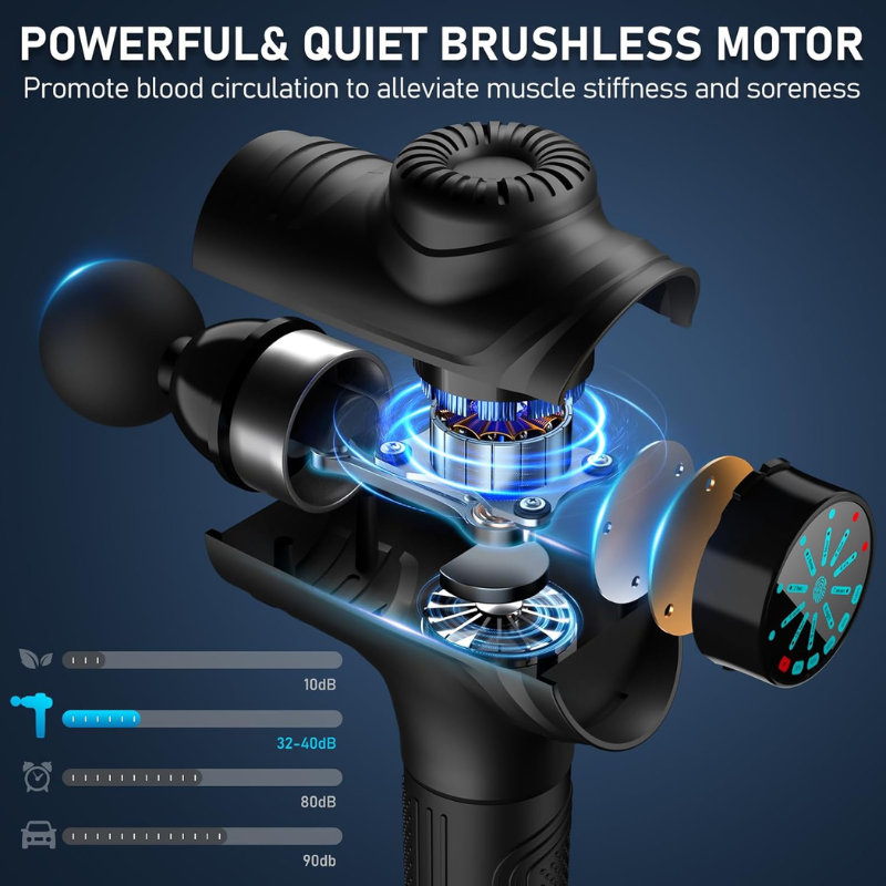 Battery Design: The massage gun can operate for 5 hours (depending on the speed selected). After 10 minutes of continuous use, the deep tissue massage gun will automatically stop running, providing intimate protection for your health and effectively protecting your battery life.