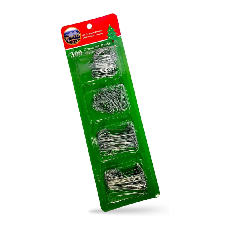 2 Sizes Included: 200 1 ¼” hooks, 100 2 ½” hooks-Use for small and large ornaments.