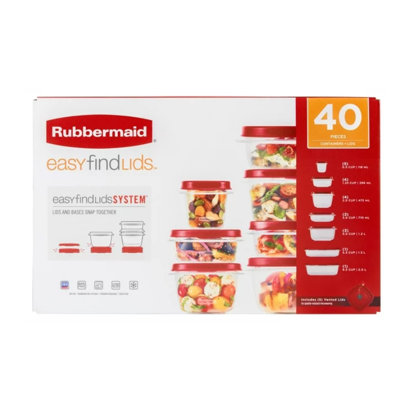 Rubbermaid EasyFindLids 40 Piece Food Storage Containers with Vented Lids Variety Set, Red