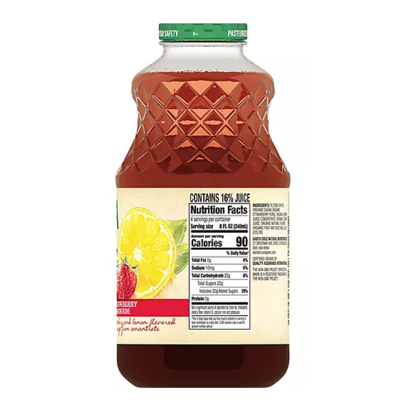 Filtered Water, Organic Sugar, Organic Strawberry Puree, Organic Lemon Juice Concentrate, Organic Natural Flavors, Organic Fruit And Vegetable Juice (color).