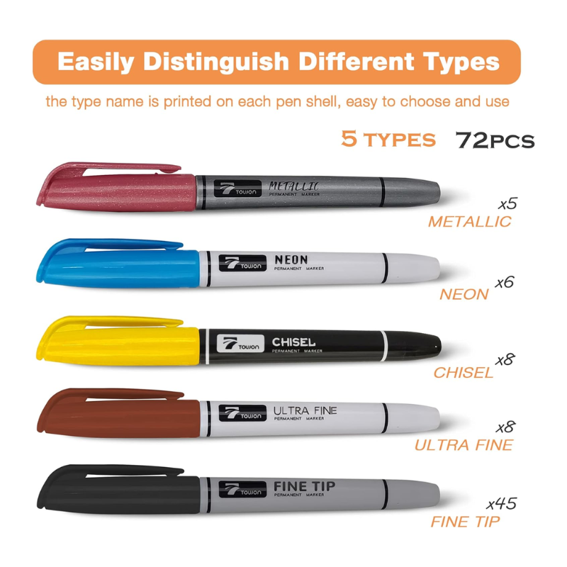 TOWON Permanent Markers 72 Assorted Colors
