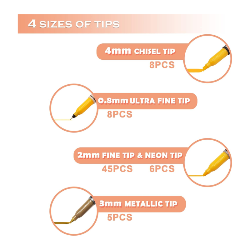 • 🖍️NOTES: To increase the life of ink, please cover the pen cap in time after use, pay special attention to placing metallic markers horizontally after use.