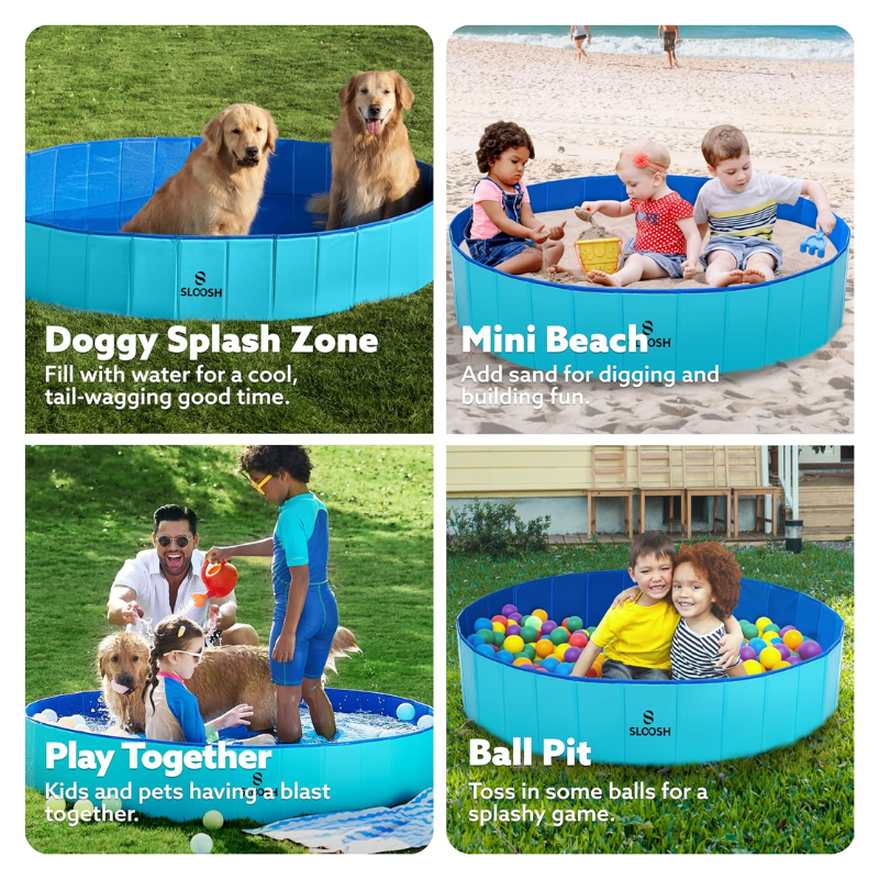 SLOOSH Foldable Dog Kiddie Pool – Portable Hard Plastic Pool
