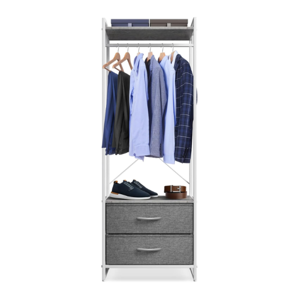 Display your closet essentials on the Sorbus Clothing Rack including shirts, dresses, pants, jackets, and more — Store smaller items in the two dresser drawers down below, such as socks, underwear, & pajamas — Utilize the top shelf to store hats, purses, & boxes.