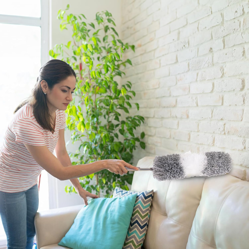 Multi Purpose: The duster kit with extending handle can easy clean the dust bunnies on the ceiling from the vent, the tops of fan, door frames, baseboards, light fixtures. Also can use for blinds, cars, household appliances and so on.