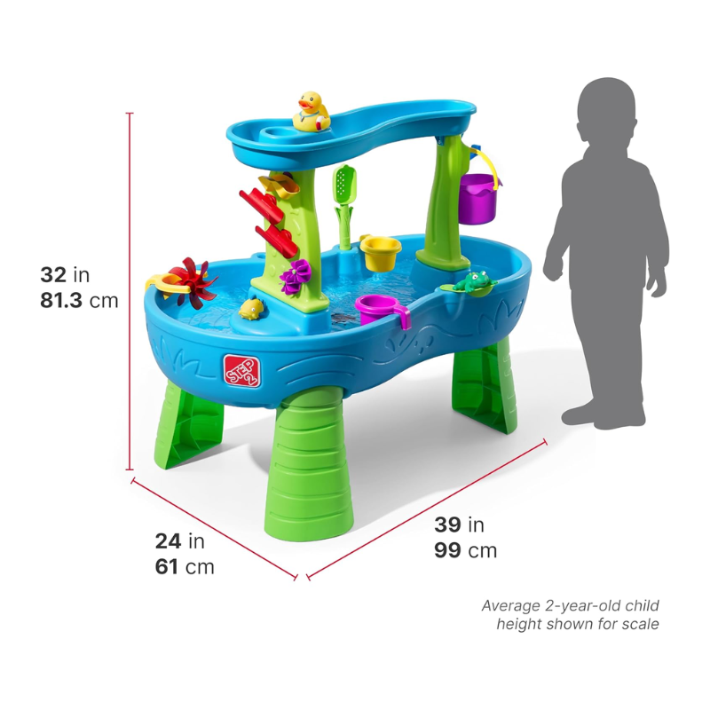Reach new heights on the two-tier platform and zip down the 45.5-inch blue slide or the 36-inch green slide, each with a weight capacity of 60 pounds. (27.2 kg) per user, 180 pounds. (81.6 kg) total, may accommodate up to three kids at once. Discover extra room beneath the platform for outside toys or exciting hide-and-seek games, which promote creativity and discovery.