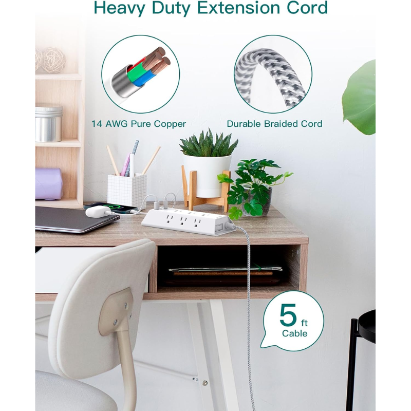 • 【2 x USB C Charging Station】- Added extra 2 USB C ports for your devices, the power strip with USB C port can charge up to 5V/3A. USB-A ports can charge up to 5V/2.4A Max. With smart charging technology, the outlet extender can auto-detect your devices and can reach faster charging efficiency, perfectly fit for your iPhone, iPad, tablet, bluetooth earphone etc