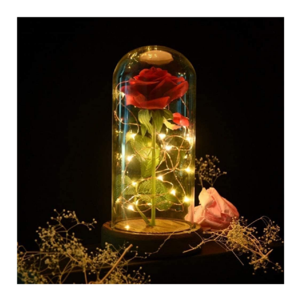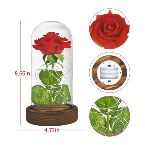Beauty and the Beast Rose Kit: Inside the clear dome is one enchanted everlasting rose, looks almost real and never fade. warm white LED string adds decorative accent. Great for home decor.Great romantic rose flower gift Valentine’s Day gift, Mother’s Day gift, birthday present and wedding gift for lovers and friends.