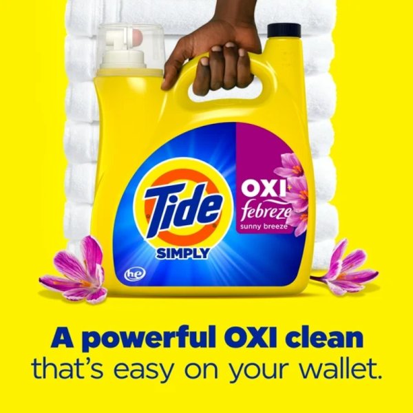 Say goodbye to tough stains and odors with Tide Simply OXI Boost + Febreze Odor Defense. 105 fl oz, 74 Loads.