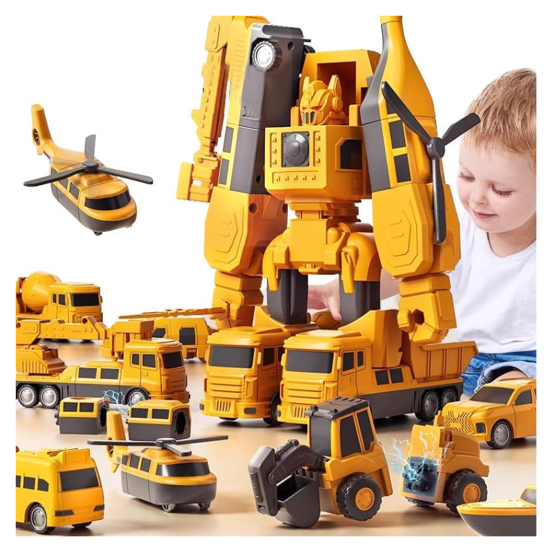 Robot Ready to Assemble— The big robot consists of 4 trucks, airplanes, and boats, which can move independently. The robot toy set has many small sections that are connected by magnetic spots, which make it super easy to combine and detach.
