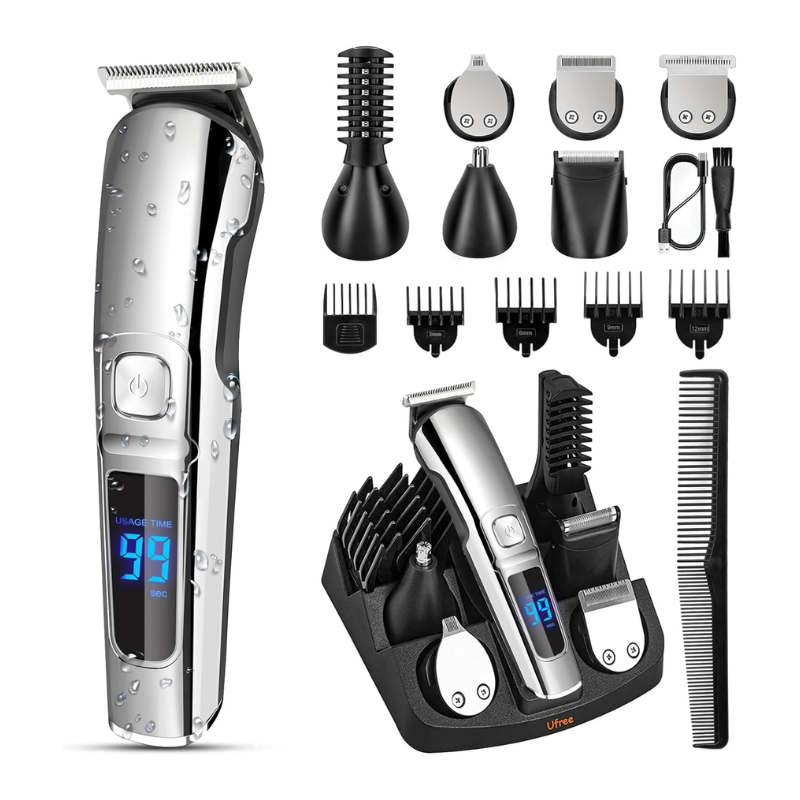 This men’s grooming kit is both waterproof and washable, making it perfect for wet and dry use in the shower. Cleaning is a breeze with the detachable blade, which can easily be cleaned with the included brush. For the best experience, allow the electric shaver to dry naturally.
