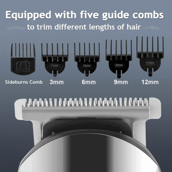 Our precision shaving system includes 6 trimmer heads for a versatile grooming experience. Whether you need to trim your face, beard, mustache, nose hair, groin, pubic hair, ball or other private parts, this trimmer kit has you covered.