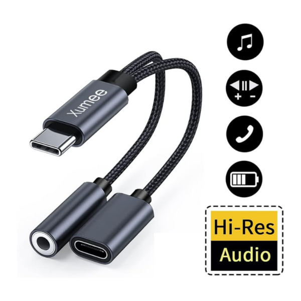USB Type C to 3.5mm Headphone and Charger Adapter