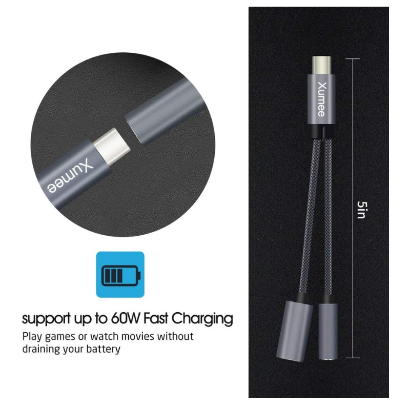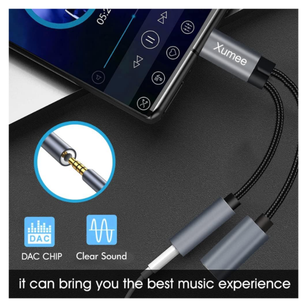 HIFI audio playing: This Xumee 2 in 1 usb c to headphone headset earphones adapter has a bulit-in premium DAC chip, you can get the better music experience from it. The 3.5mm female port compatible with CTIA and OMTP.
