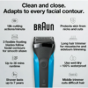 Tough on beards and smooth on the skin, Braun Series 3 Electric Shavers for men provide a comfortable and efficient shaving experience. This face and beard shaver features three pressure-sensitive shaving elements (3-Flex head) that automatically retract to protect your skin and adapt perfectly to facial contours for a close and gentle shave. Braun’s patented Senso-Foil (twin foils) protects your skin from the ultra-sharp blades while working together with an integrated middle trimmer to effectively cut both long and short hairs. The full shaving power of the Series 3 is built in a super thin head, allowing you to easily reach difficult areas like under the nose. This wet and dry foil shaver is 100% waterproof and can be used with foam, gel or even under the shower. Plus, you can conveniently rinse the electric shaver under running water for easy cleaning.