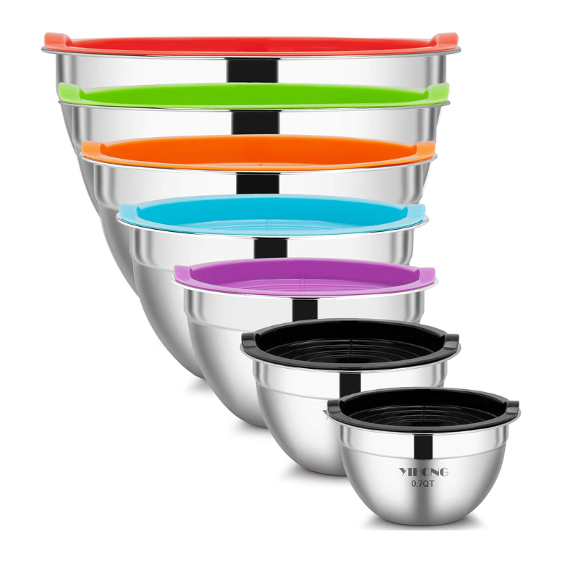 YIHONG 7 Piece Mixing Bowls with Lids for Kitchen, Stainless Steel Mixing Bowls Set Ideal for Baking