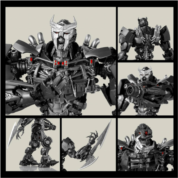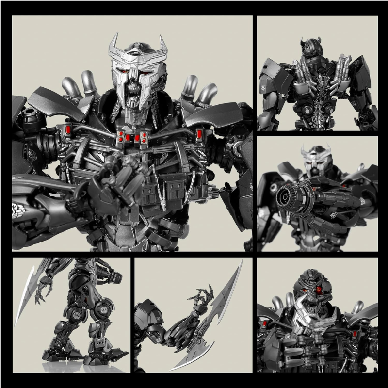 - 【Highly-articulated Scourge Transformer Toys】With every joint movable,this PRE-ASSEMBLED and premium Scourge figure provides a decent amount of cool poses and looks,fun to play.It can turn around 180 degrees,with both arms rotating 360 degrees and lifting/opening 90 degrees in all directions.Its head can rotate 360 degrees,tilt up/down about 15 degrees for more realistic poses.More surprisingly,its legs can perform front/side/back kicking 150 degrees and curling 90 degrees(with armor open)